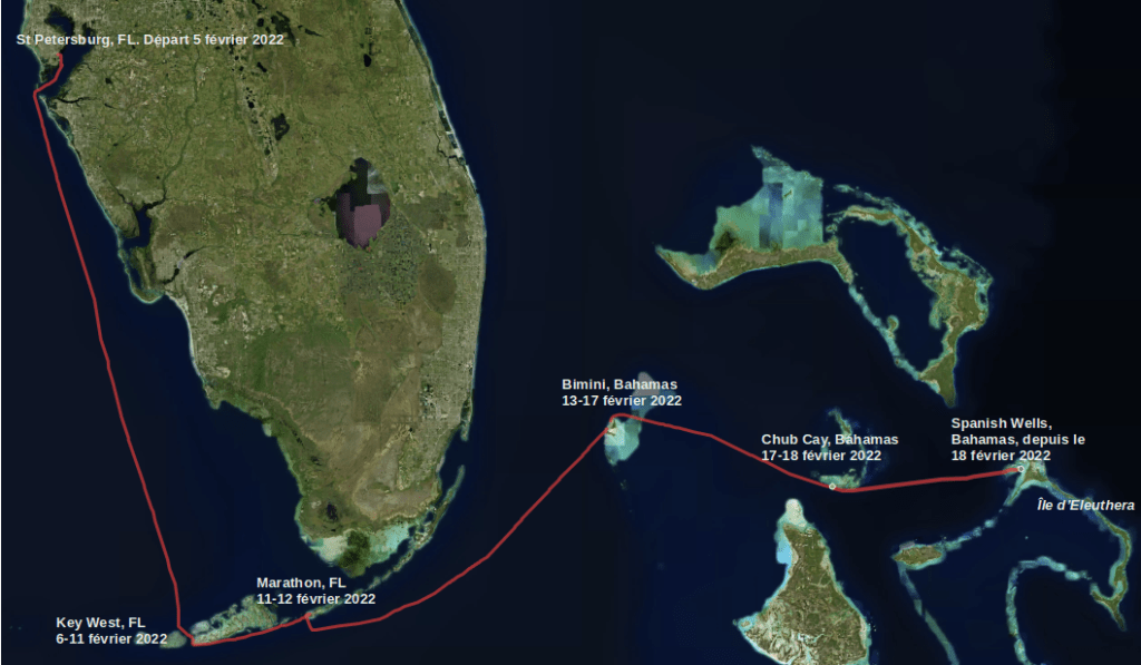 - 5 février : départ de St Petersburg, FL aux alentours de 15:00.